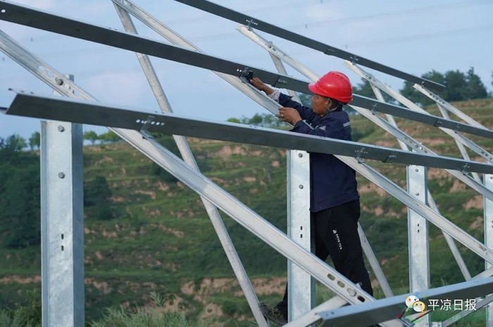 8月3日,記者在崆峒區大寨鄉清源平涼崆峒區150兆瓦農光互補光伏發電項目建設現場看到,工人們正頂著烈日,在山臺地上安裝固定支架。項目開發經理蘆辰哲介紹,再有五六天就可以安裝太陽能光伏板,完成組件安裝。