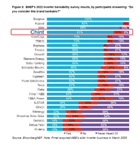 近日,彭博新能源財經(BNEF)發布了《2022年組件與逆變器融資價值報告》,為這個寒涼的天氣增添了幾分火熱。更值得慶祝的是正泰在逆變器領域的融資價值排名全球第四,較2021年第八上升了4名,獲得優質可融資性。