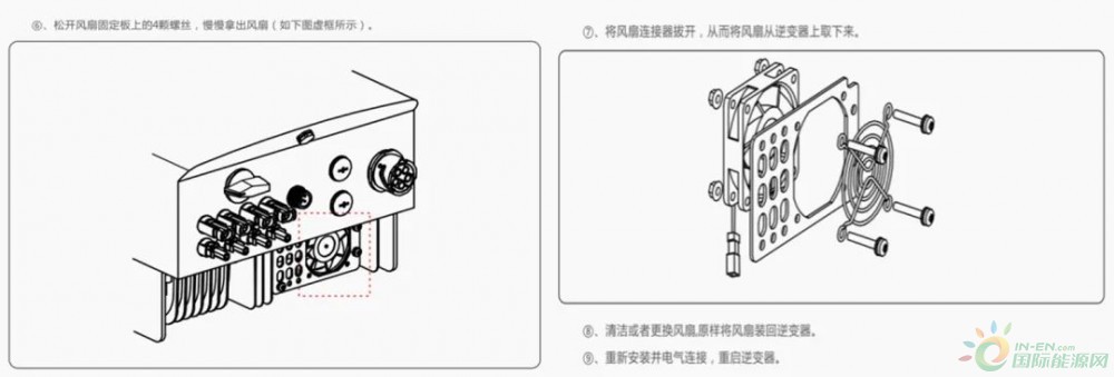 光伏逆變器普遍安裝于戶外,受日曬、雨淋、沙塵或高溫等自然因素影響,因此,光伏逆變器的散熱性能成了影響逆變器穩(wěn)定可靠運行的主要因素之一。逆變器的散熱方式有兩種:一是采用自然散熱,即依靠自身散熱器散熱,二是輔以散熱風扇,依靠外力強制冷卻。正值高溫酷暑,良好的散熱性能是逆變器高效發(fā)電、可靠運行的關(guān)鍵,但置于外部環(huán)境中的逆變器有許多因素會影響散熱風扇運行,因此定期維護有利于逆變器的正常運行。本期小課堂為大家分享逆變器散熱風扇維護相關(guān)問題。