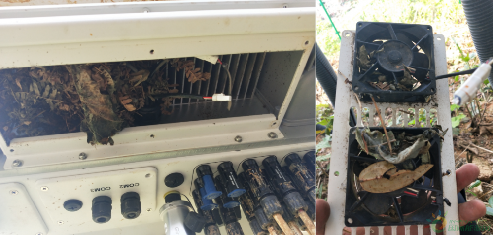 圖4:雜物堵塞逆變器風道和風扇,導(dǎo)致散熱影響