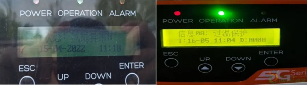 圖3:風扇故障導(dǎo)致逆變器顯示風扇異常及過溫保護報警