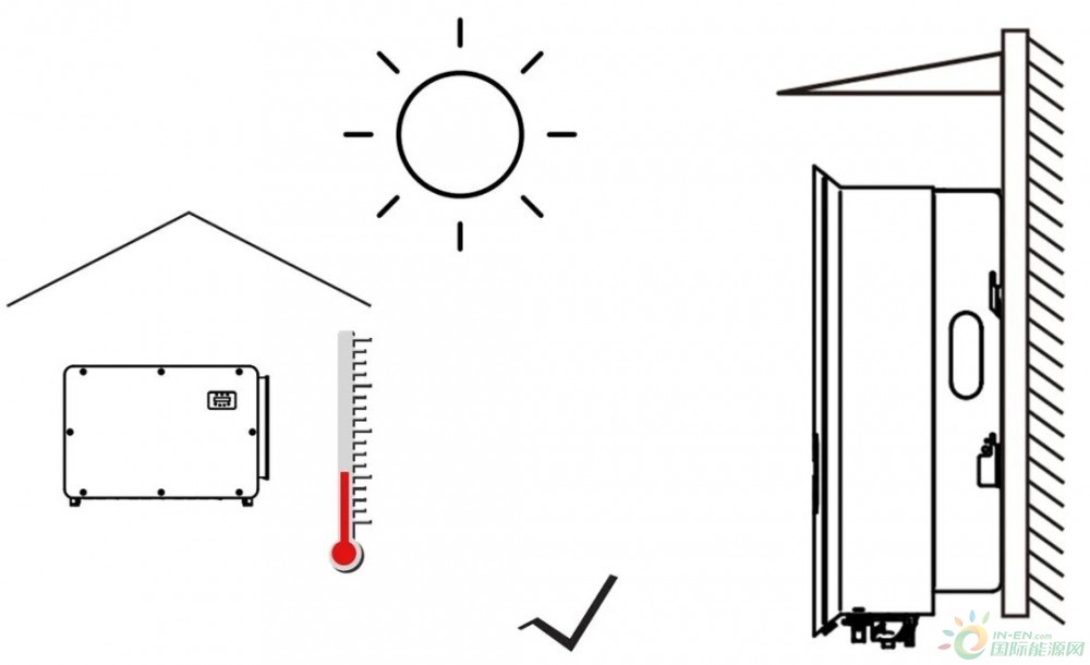 當然更好的方法是為逆變器增設(shè)遮陽板等外部設(shè)施,不但可以防止泥土或枯枝落葉堵塞散熱通道和風扇,同時也可遮擋陽光直射降低逆變器溫升。