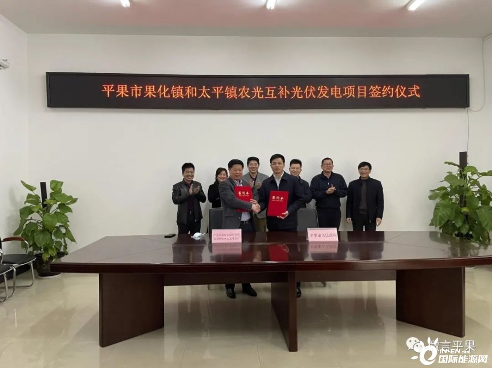 3月1日,平果市人民政府與廣西桂冠電力股份有限公司大化水力發電總廠,就平果市果化鎮和太平鎮農光互補光伏發電項目進行簽約。平果市委常委、市人民政府副市長李華聰出席簽約儀式并代表簽約。