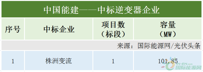 中國能建有1個逆變器采購項目定標,容量為101.85MW。株洲變流是最終的中標人。