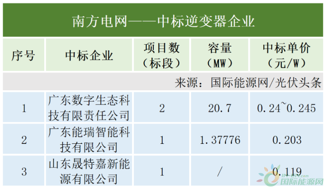 南方電網(wǎng)有4個項目定標,合計容量22.08MW。其中廣東數(shù)字生態(tài)科技有限責任公司中標2個項目,容量20.7MW,另外兩個項目的中標人為廣東能瑞智能科技有限公司以及山東晟特嘉新能源有限公司。