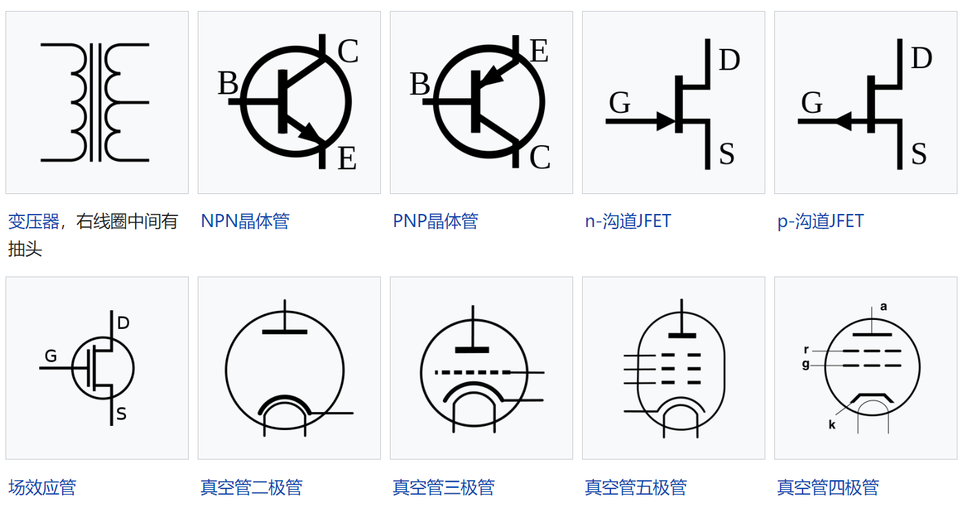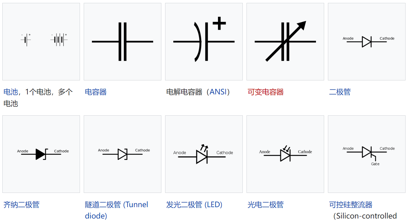 在電路圖符號的標準也有數個,依地區而異,有些微差異。目前的國際標準是IEC 60617。