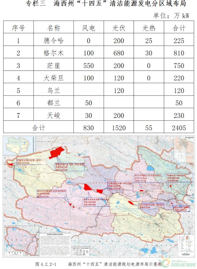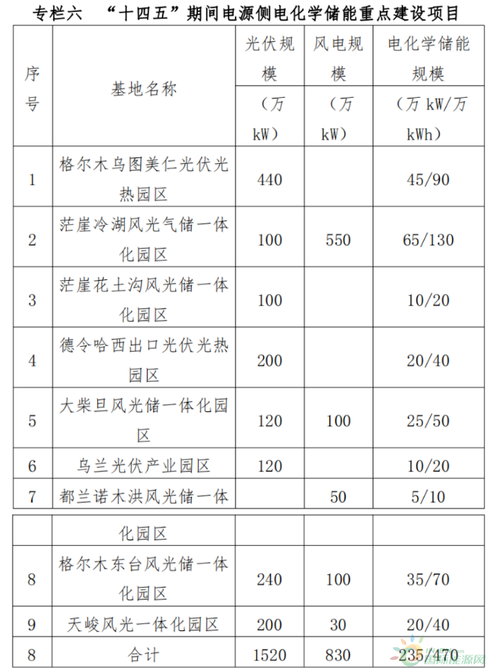 近期,《海西州“十四五”清潔能源發(fā)展規(guī)劃》已經(jīng)發(fā)布,規(guī)劃顯示,海西州綜合考慮內(nèi)需和外送,規(guī)劃“十四五”新增光伏項(xiàng)目1520萬(wàn)千瓦,其中外送光伏項(xiàng)目800萬(wàn)千瓦,青海電網(wǎng)消納光伏項(xiàng)目720萬(wàn)千瓦。新增光熱項(xiàng)目55萬(wàn)千瓦,其中外送30萬(wàn)千瓦,青海電網(wǎng)消納25萬(wàn)千瓦。新增風(fēng)電830萬(wàn)千瓦,其中外送風(fēng)電項(xiàng)目400萬(wàn)千瓦,內(nèi)消風(fēng)電項(xiàng)目430萬(wàn)千瓦。主要分布在德令哈 、格爾木、茫崖、大柴旦、烏蘭、都蘭、天駿等7個(gè)地區(qū)。