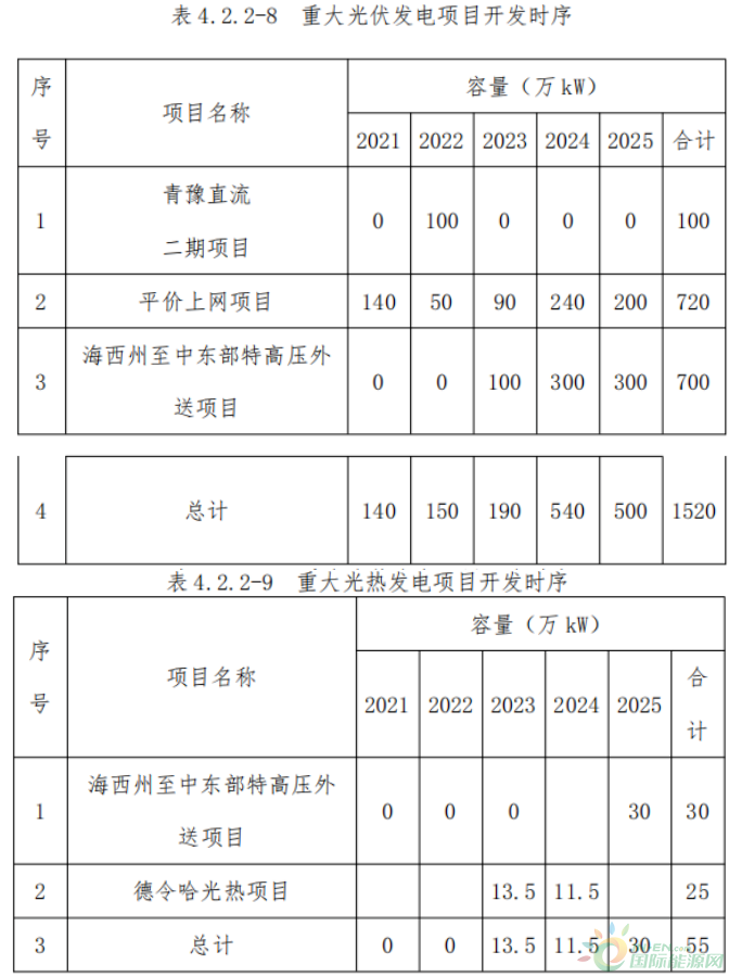 根據(jù)規(guī)劃,海西州“十四五”新能源發(fā)電重點(diǎn)建設(shè)光伏項(xiàng)目包括:海西州至中東部特高壓外送光伏項(xiàng)目700萬(wàn)千瓦、青豫直流特高壓二期項(xiàng)目光伏項(xiàng)目100萬(wàn)千瓦、平價(jià)光伏項(xiàng)目480萬(wàn)千瓦、德令哈光熱項(xiàng)目25萬(wàn)千瓦、格爾木光熱項(xiàng)目30萬(wàn)千瓦。