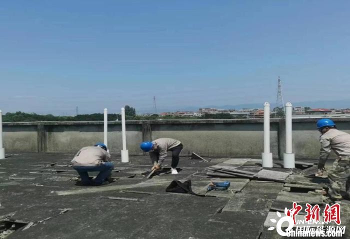 施工隊(duì)正在福建高速龍掘東服務(wù)區(qū)屋頂施工作業(yè)。